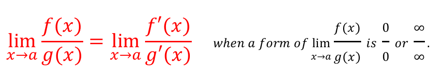 제가 거듭 강조하지만, 로피탈 정리를 사용하기 위해서는 조건을 잘 만족시켜야 합니다. 하지만, 사실상 0/0꼴 아니면, ∞/∞은 대부분 이 정리 사용이 가능하며, 분수꼴이 아닌 형태도 분수꼴로 만들어 적용시킬 수 있습니다. 이 로피탈 정리의 실제 쓰임은 다음 문단에서 직접 부정형의 종류를 다루면서 알아보겠습니다!!